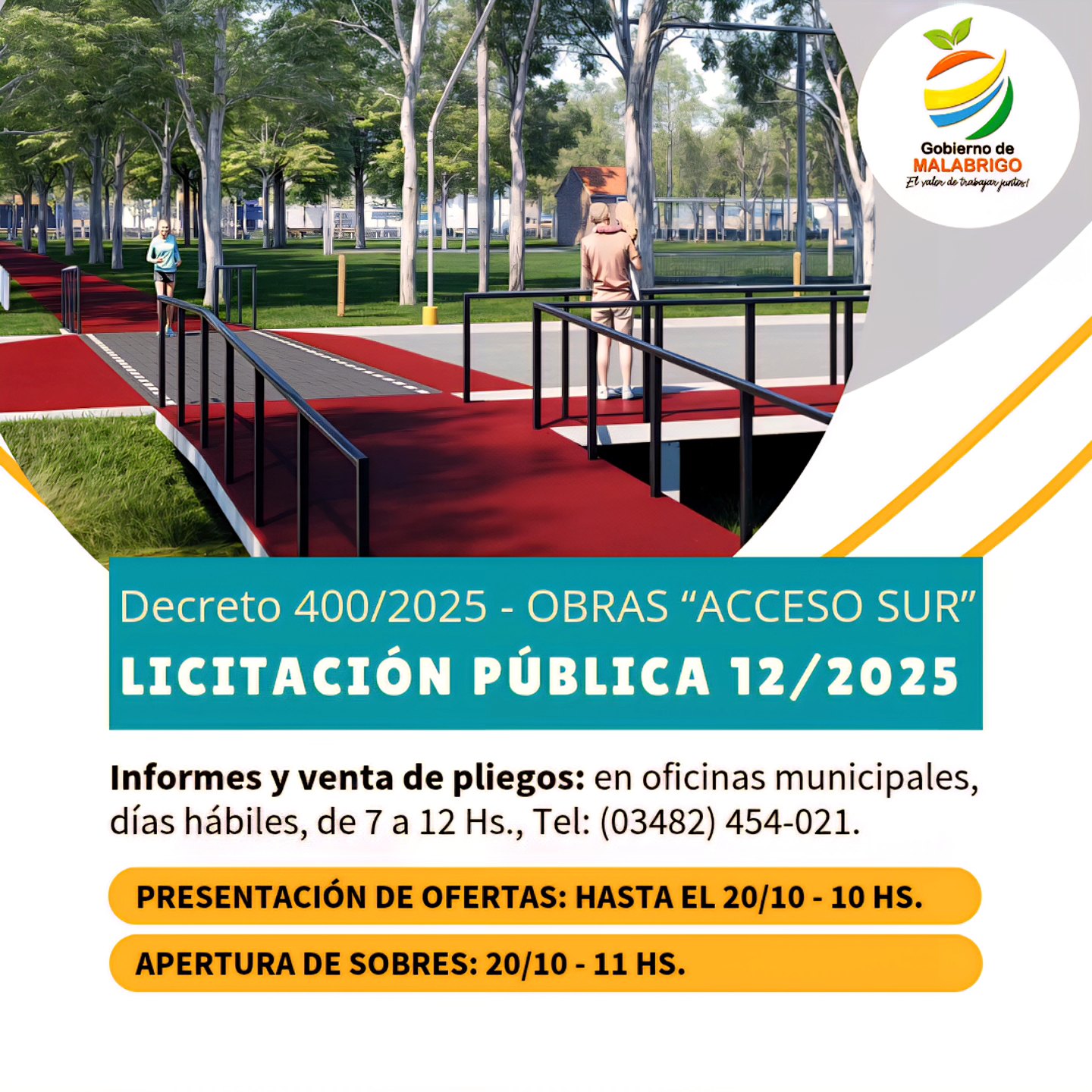 Informes y Ventas de Pliegos: Oficinas Municipales, en días hábiles de 07.00 a 12.00 horas. T.E 03482-454021. E-mail: muni.compras@malabrigo.gob.ar